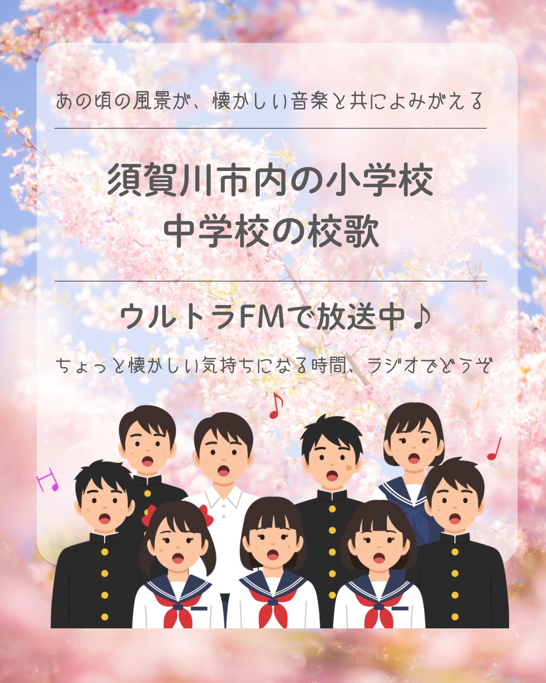 3. 須賀川市内の小学校・中学校の校歌を放送中!2月より放送日時が変更